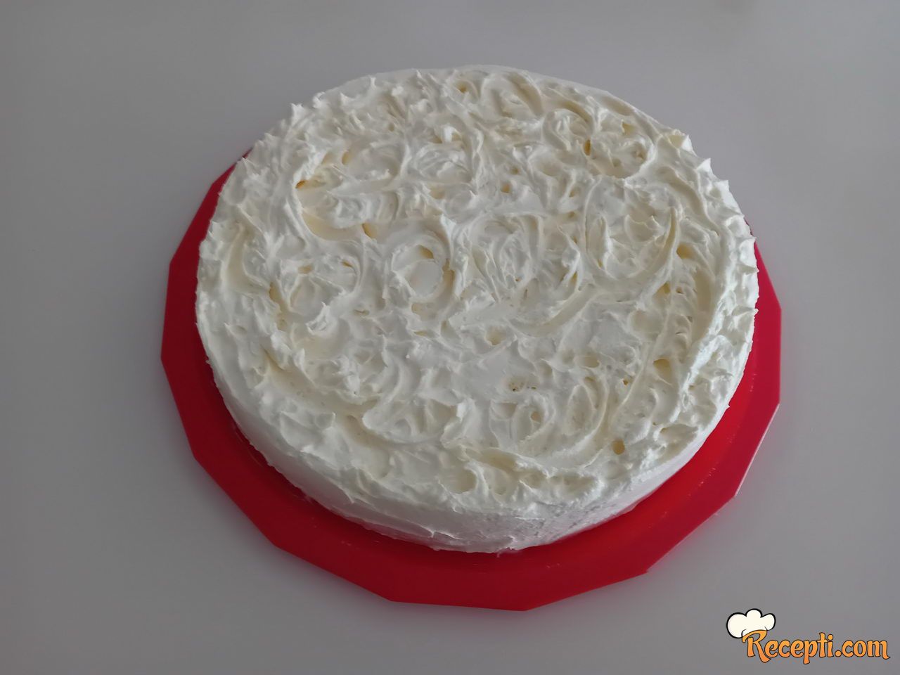 Šlag krem umutiti po uputstvu sa kesice i nafilovati tortu.