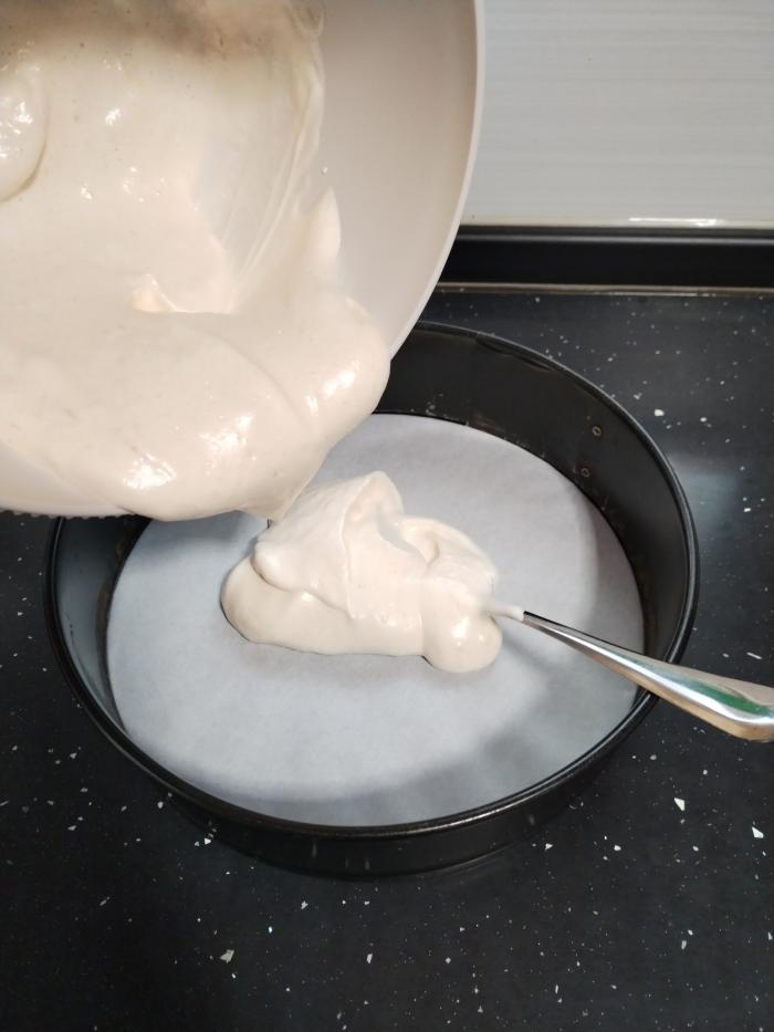 Za svetlu koru razdvojte belanca i žumanca pa belanca penasto umutite sa šećerom. Zatim dodajte jedno po jedno žumance i dalje muteći. Brašno pomešajte sa praškom za pecivo, pa polako umešajte u prethodnu smesu mešajući varjačom. Smesu izlijte u okrugli pleh obložen papirom za pečenje.