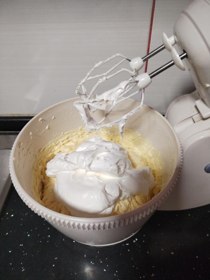 Preko džema stavite 1/2 žute kreme.
