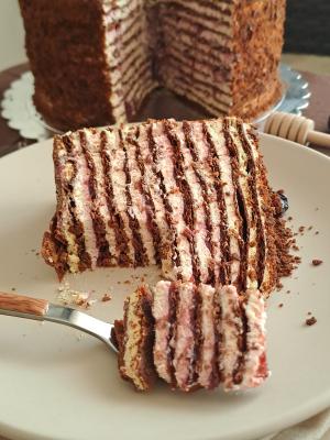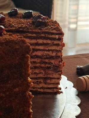Za kore, staviti u šerpicu margarin, med, šećer, smeđi šećer, kakao, cimet i jaja i zagrevati uz mešanje do ključanja. Kada provri, skloniti sa šporeta, pa dodati mešavinu brašna i sode bikarbone. Izmešati sve dobro, pa zamesiti glatko testo.