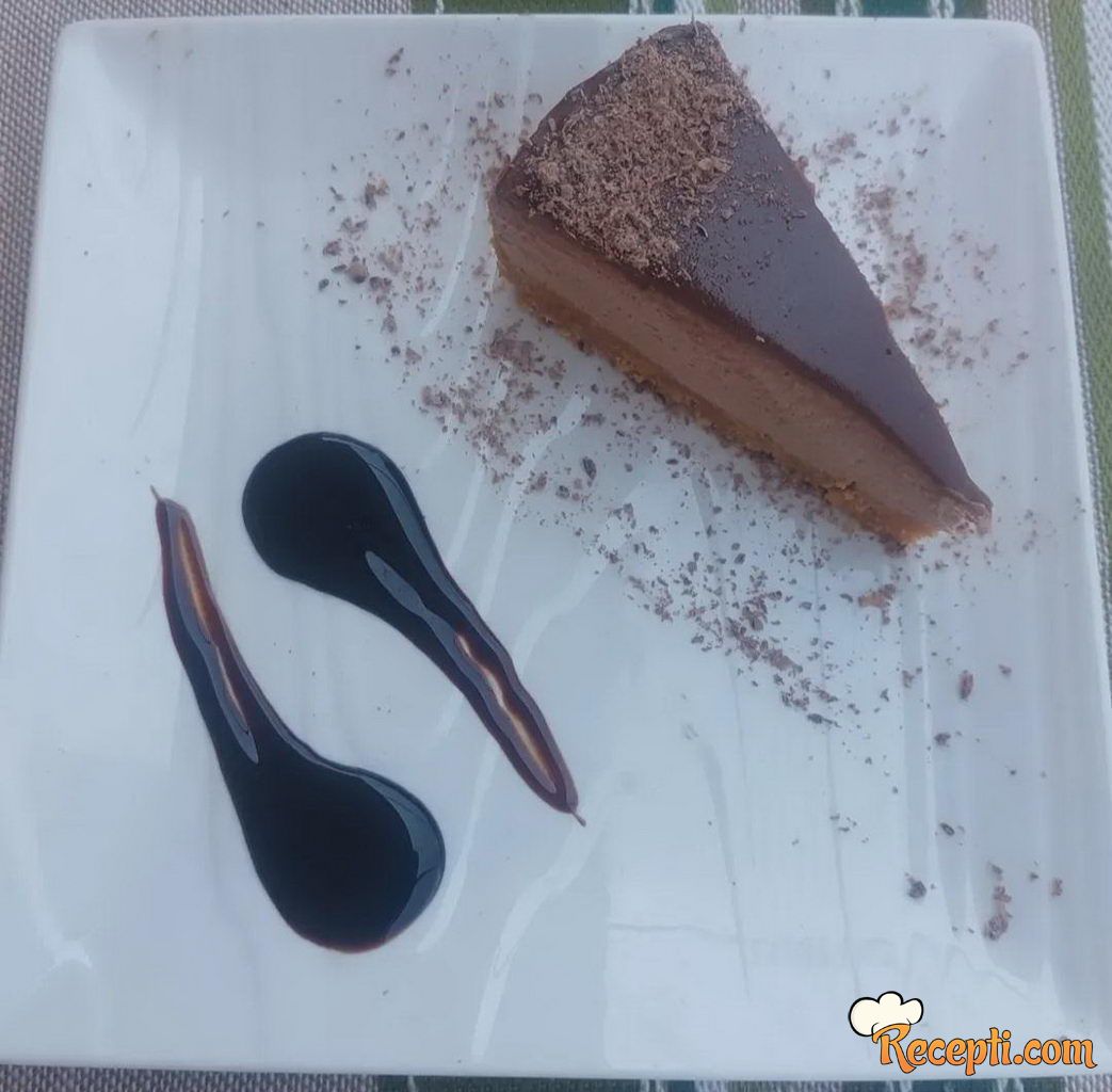 Ganaš: Zagrejati slatku pavlaku (ne sme da proključa) zatim skinuti sa vatre pa dodati sitno iseckanu čokoladu i mešati dok se ne istopi. Preliti kolač pa ga držati u frižideru (najbolje preko noći).
