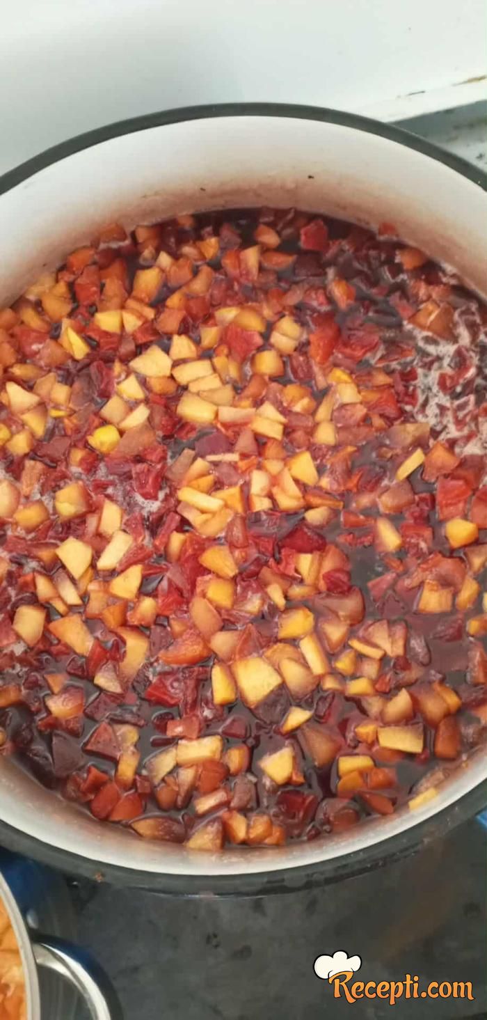 Kraj kuvanja. Kada kap sirupa na tanjiriću formira gusti biserasti oblik, dodati sok od drugog limuna (i vanilin šećer, ako želiš aromu). Promešati i skinuti sa vatre.