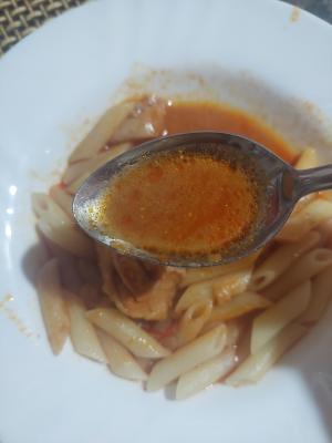 Luk sitno seckati. Propržiti staklasto na masti. Dodati pileće meso iseckano. Pržiti još koji minut. Dodati papriku sečenu i paradajz naseckan, posuti crvenom paprikom. Naliti vodom i posoliti. Nastaviti kuvati.