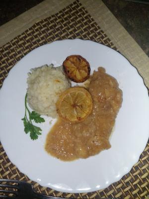 Jedan limun seći na kolutove. Popržiti sa obe stane u istom tignju gde se pržila piletina. Izvaditi limun iz tignja.