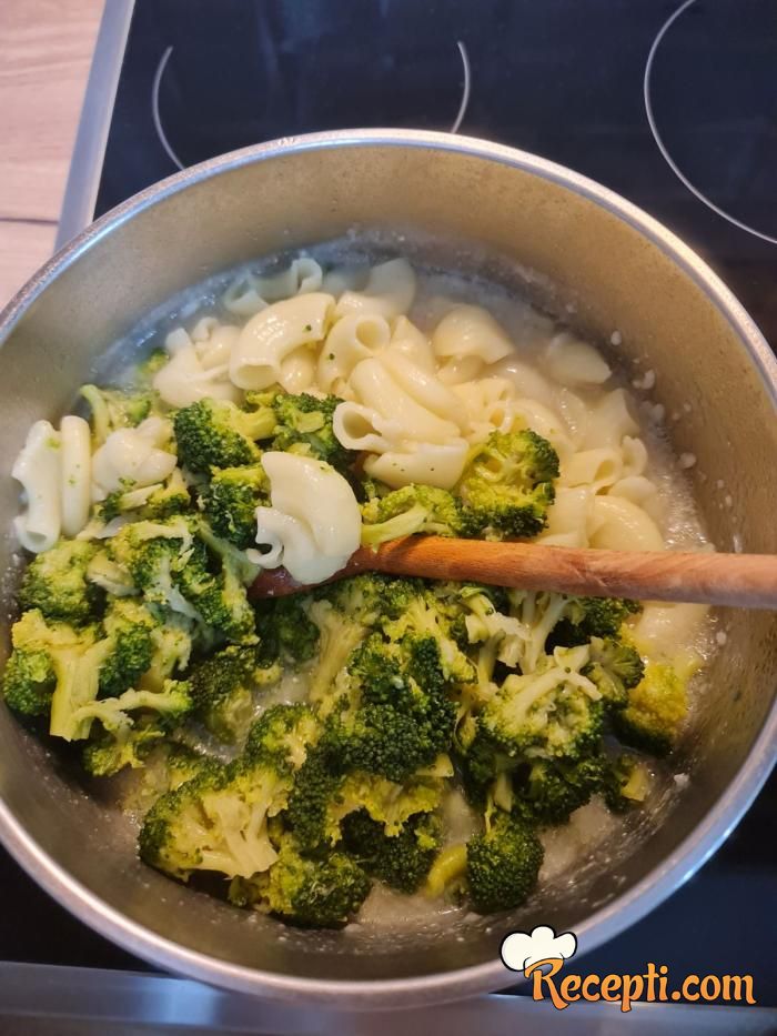 Zatim dodajte pavlaku za kuvanje pa ostavite još malo da se kuva. Služite dok je još toplo. Po želji od gore možete posuti rendanom mozzarelom.