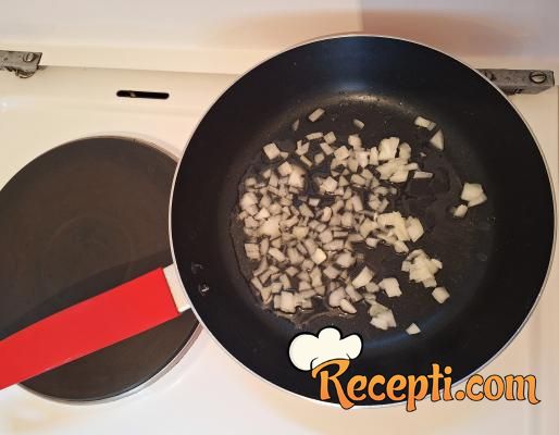 Na malo ulja propržiti sitno isečen crni luk.