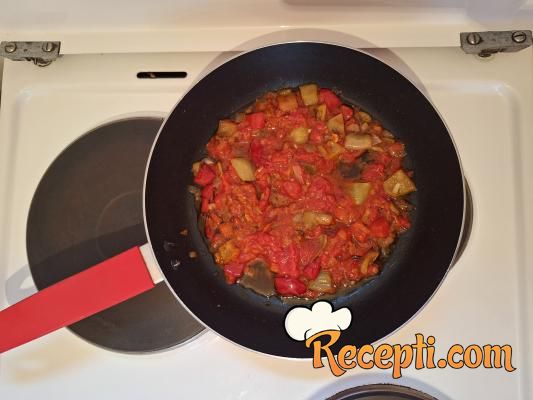 Dodati seckanu paprika i kratko propržiti.