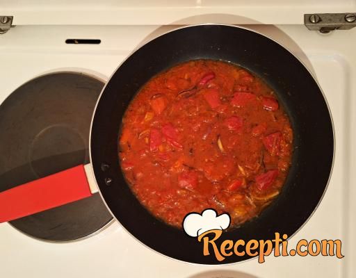Dodati seckanu pečenu paprika i kratko propržiti.