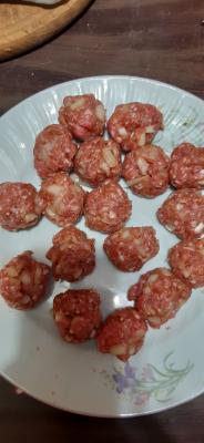 Dok se krompir kuva napravite ćuftice. U mleveno meso dodajte sitno naseckan crni luk, so, biber, granule belog luka i alevu papriku. Sve dobro izmešajte da se lepo sjedini. Od smese napravite male ćufte.