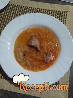 Kupus oprati, preliti vodom i pristaviti da se kuva. Meso seći na kocke veličine po želji. Dodati uz kupus. Poklopiti i kuvati. Malo kasnije dodati i so po potrebi i suvi biljni začin.