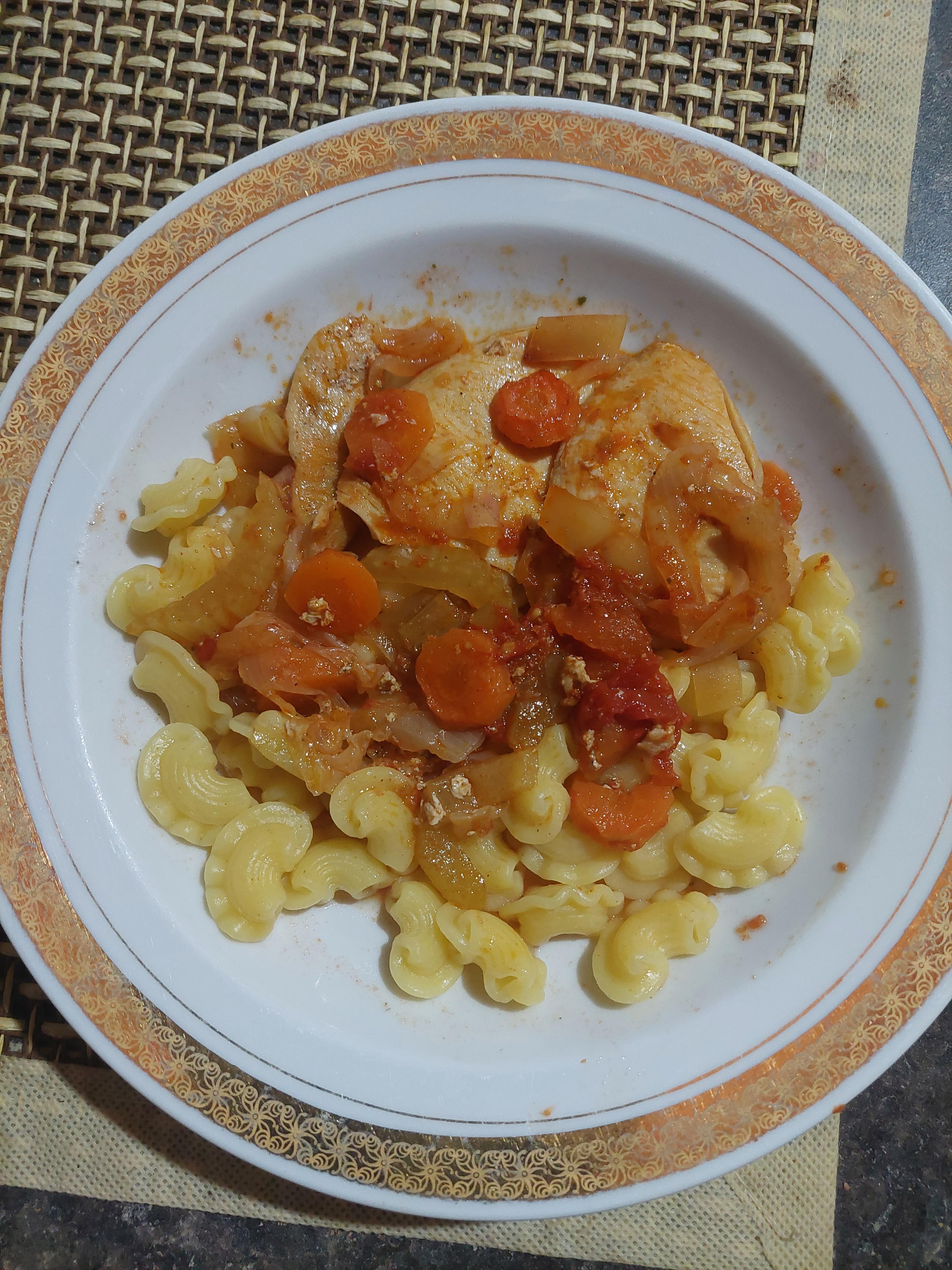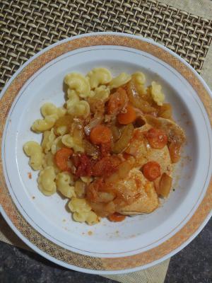 Paradajz i paprika su iz zamrzivača. Po potrebi može se doliti i kuvani paradajz. Testenina je ovde makaroni sa krestom.