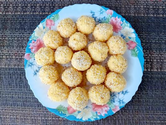 U vodu dodati so, ulje i staviti na ringlu Kad provri, postepeno dodavati palentu i mešati sve vreme dok se palenta ne skuva. Skloniti sa ringle, ostaviti da se prohladi, dodati biber, rendani kačkavalj i izmešati kako bi se svi sastojci sjedinili. Od pripremljene smese oblikovati kuglice, valjati ih u propržen susam, složiti na tacnu i poslužiti.