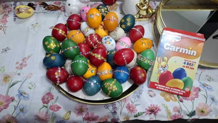 Skuvati 30 običnih jaja i 20 izbeljenih. Kuvaju se oko 15 minuta na umerenoj temperaturi. U isto vreme pripremiti boje prema uputstvu na pakovanjima. U odvojenim činijicama ih razmekšati i pomešati sa sirćetom.