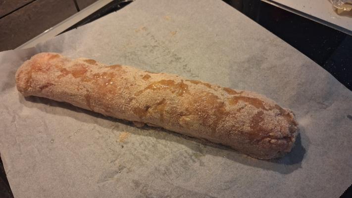 Posle 45 minuta izvaditi iz rerne, razmotati foliju, izvući papir i vratiti još 5 minuta da se lepo zapeče korica.
