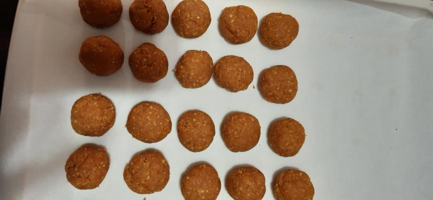 U mlevene keks dodajte sok od pomorandže i sitno narendanu koru pomorandže, pa onda postepeno dodajte kašiku po kašiku džema i mesite smesu da dobijete meku, ujednačenu, kompaktnu smesu (koja se ne troši). Formirajte bombice željene veličine.