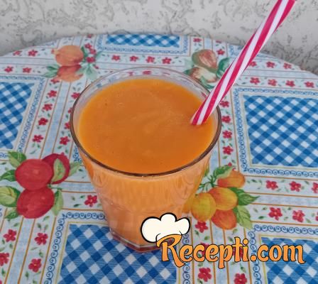 Oljuštiti šargarepu, naseckati i staviti u blender. Jabuku oljuštiti, očistiti od semenki, naseckati i staviti u blender. Dodati đumbir, limunov sok, vodu i sve sjediniti u blenderu. Sipati u čašu. Dobro rashladiti pre služenja.