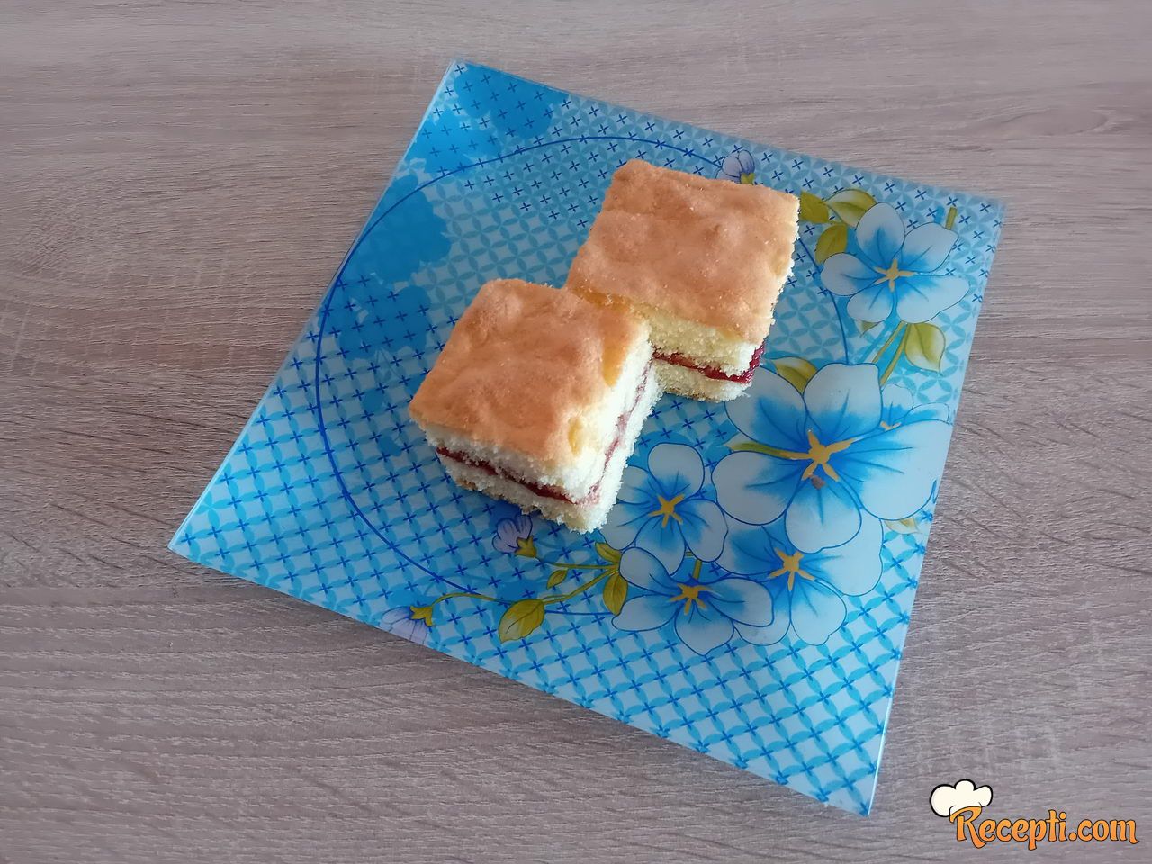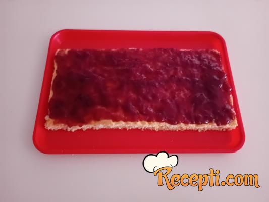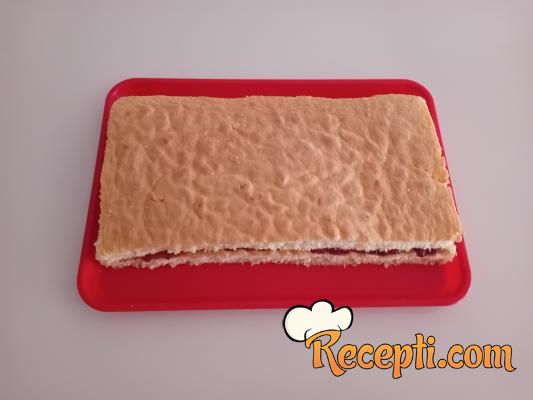 Ovaj kolač je nastao neplanirano. Elem, rešim da napravim Trileće i procenim da je pleh odgovarajućih dimenzija. Ali, kada se kora ispekla, bila je tanka za Trileće, a debela da napravim rolat. Tada sam došla na ideju-odsekla sam ivice kada se kora prohladila, prepolovila je, nafilovala je domaćim džemom od jagoda i eto nama ukusne poslastice. Trileće sam odmah nakon toga napravila (objavljen je recept). Prijatno!