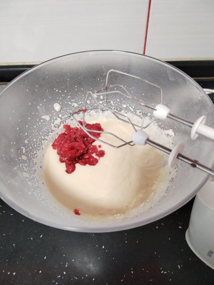 Dodajte pire od malina i izmešajte da se dobro sjedine.