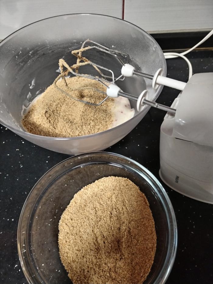 Postepno dodajte mleveni keks mešajući, dok se ne dobije konzistencija nalik na testo.