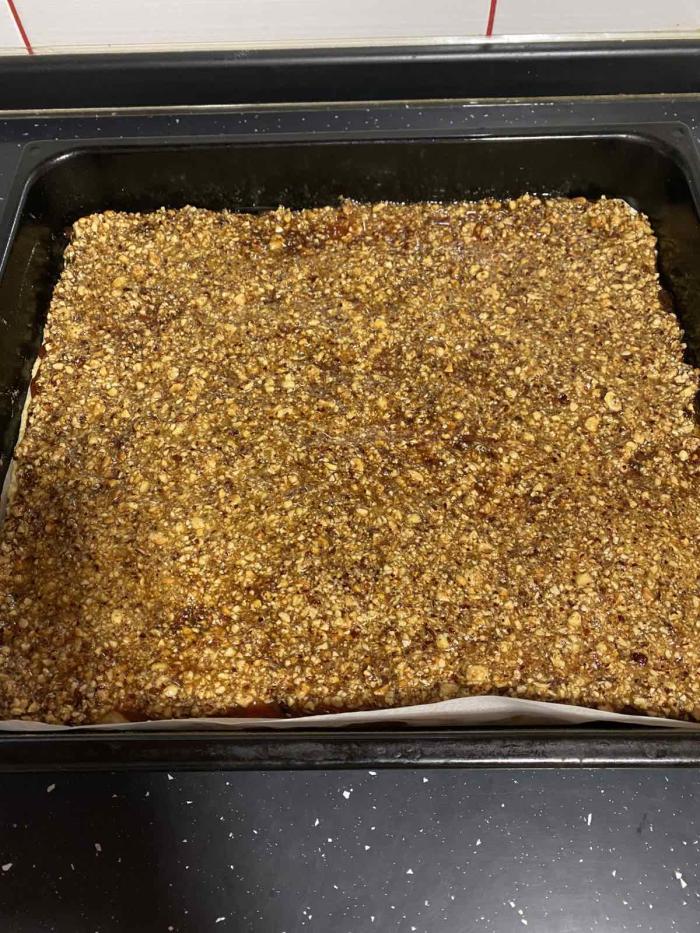 Pospite i poređajte pripremljene lešnike preko marmelade. Nema potrebe da čekate da se ohlade.