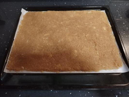 Pleh obložite papirom za pečenje. Rasporedite pržene jabuke ravnomerno po dnu.