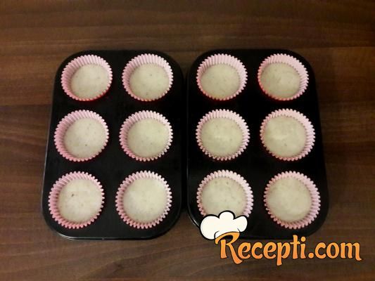 U kalup za mafine staviti papirne korpice za pečenje. Smesu izliti do polovine papirne korpice.