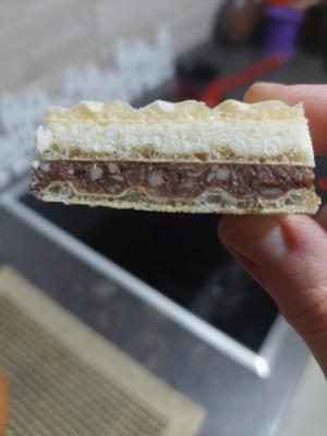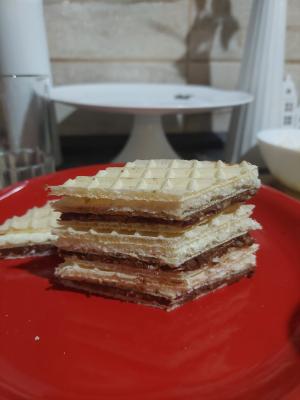 List oblande namazati tamnim kremom. Na njega staviti još jedan list oblande.