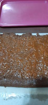 Spremiti glazuru od čokolade: nalomkanu čokoladu pomešanu sa uljem otopiti na nižoj temperaturi uz povremeno mešanje. Malo prohladiti pa preliti preko rolata. Ostaviti da se glazura skroz ohladi i stegne pa seći na parčiće.