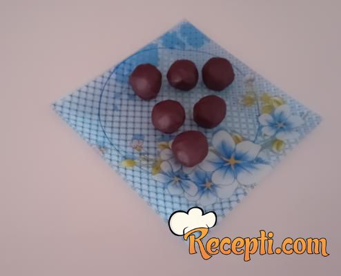 Za glazuru: Čokoladu za kuvanje polomiti na kockice, staviti u šerpu, dodati ulje te otopiti na pari. Na tacnu staviti papir za pečenje. U čokoladnu glazuru valjati kuglice. Ređati preko papira za pečenje i ostaviti u frižider da odstoje dok se čokolada ne stegne. Kuglice složiti na tacnu i poslužiti.