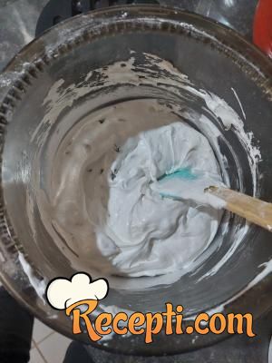 Belanca lupati u sneg uz postepeno dodavanje šećera. Dodati i vanil šećer.