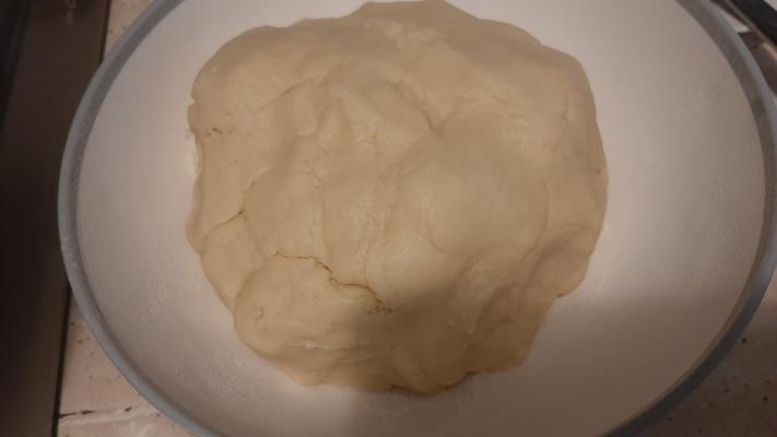 U prosejano brašno dodati omekšan margarin i prah šećer, narendati koricu od pola limuna i dodati vanilu. Zamesiti testo i ostaviti u frižideru da očvrsne.