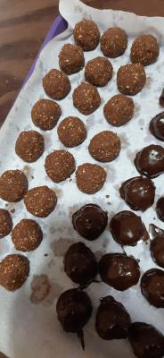 Otopiti na pari ili na nižoj temperaturi izlomkanu čokoladu pomešanu sa uljem. Vrlo kratko prohladiti. Uvaljati bombice u glazuru ili ih preliti glazurom. Ostaviti da se glazura ohladi i stegne.