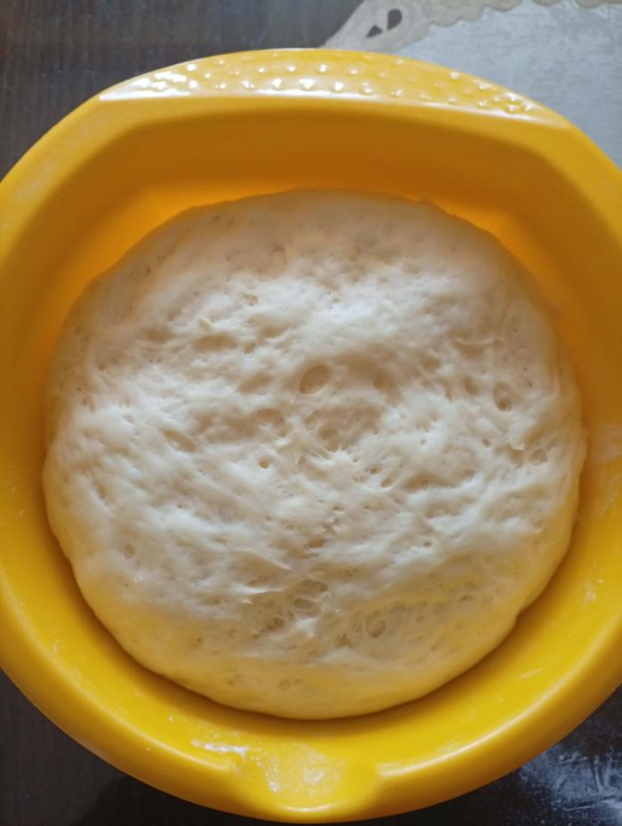 U posudu sipati brašno, dodati jaje i istopljeni margarin. Zatim polako dodavati mleko sa kvascem, pa zamesiti meko testo.