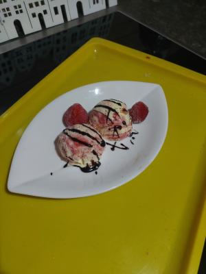Servirati sa jagodama i čokoladnim prelivom.