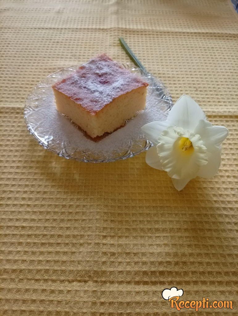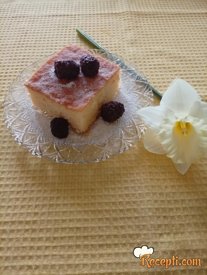 Vruć kolač preliti sa vrućim mlekom i ostaviti da dobro upije.