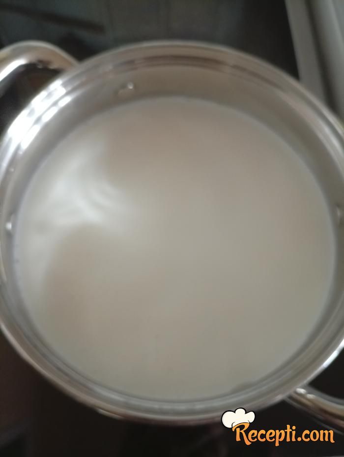 U šerpu sipati mleko, dodati šećer i vanilin šećer pa staviti da provri..