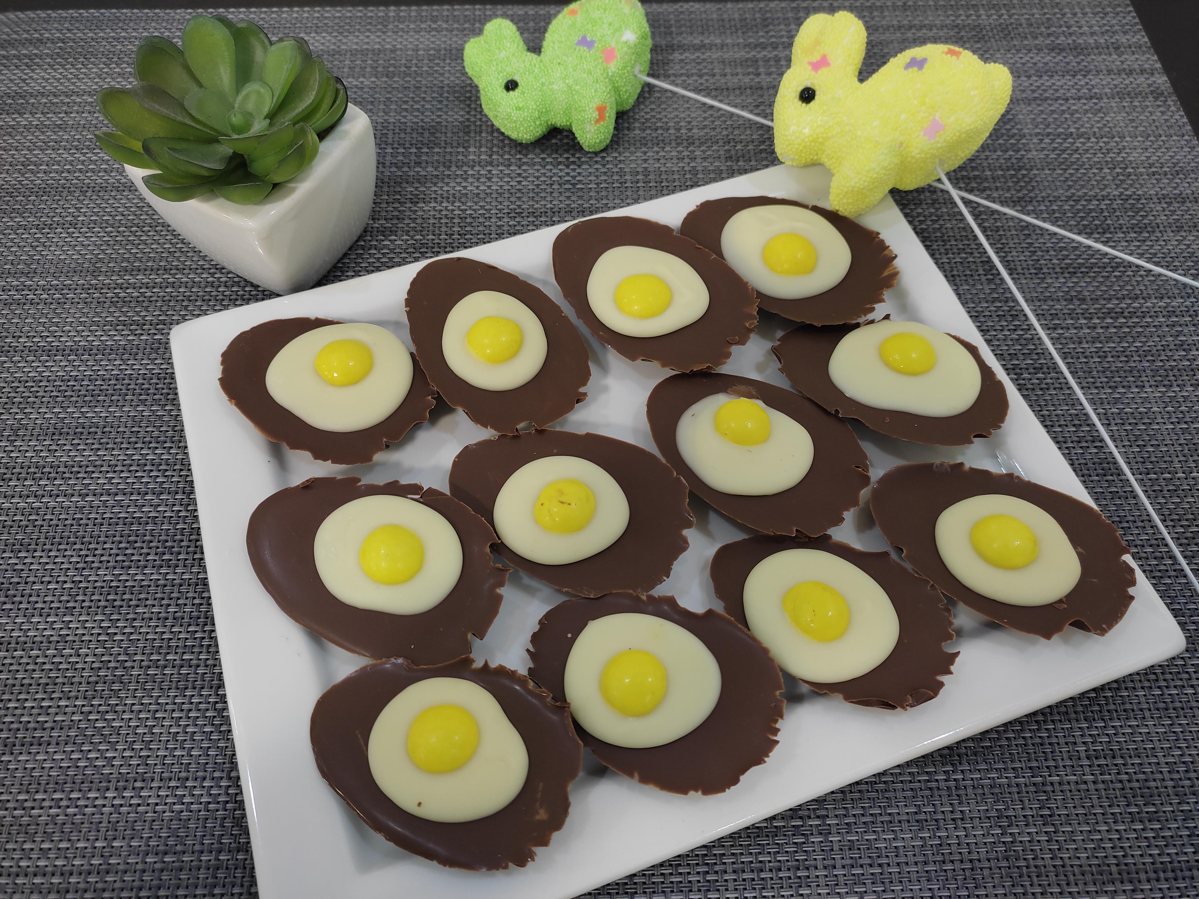 Gotova čokoladna jaja stavite u frižider na oko sat vremena, pa ih uz pomoć folije izvadite iz kašika.