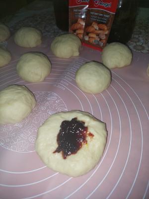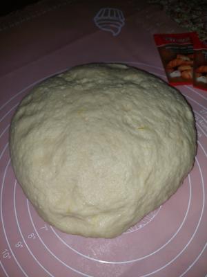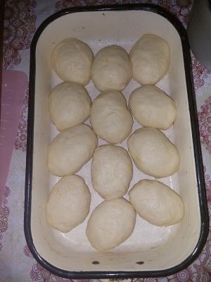 Suvi kvasac se dodaje direktno u brašno bez aktiviranja. Ja uvek malo odradim taj deo sa kvascem. Testo je dosta mekano. Takođe so uvek dodajem pred kraj mesenja kao i margarin, ulje ili mast zavisno šta se koristi. Ja sam ovaj put odstupala od recepta jer nisam imala margarin pa sam koristila mast. Rezultat isti samo masti treba malo manje od margarina. Pleh sam namazala mašću i posula šećerom. Tako da su se i od dole buhte lepo karamelizovale. Eto ukratko, prijatno