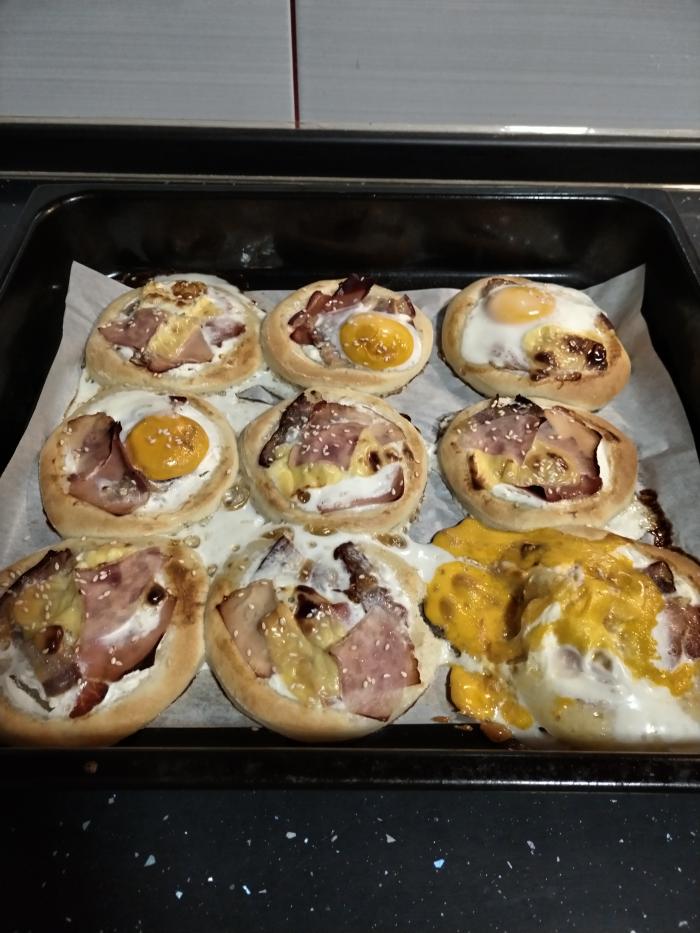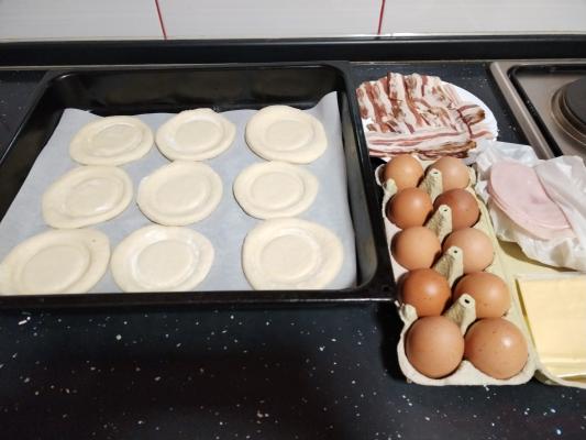 Od preostalog testa oblikujte veći krug (kao pizzu), premažite pavlakom, napunite pančetom, pečenicom i jajetom pa i nju ispecite.