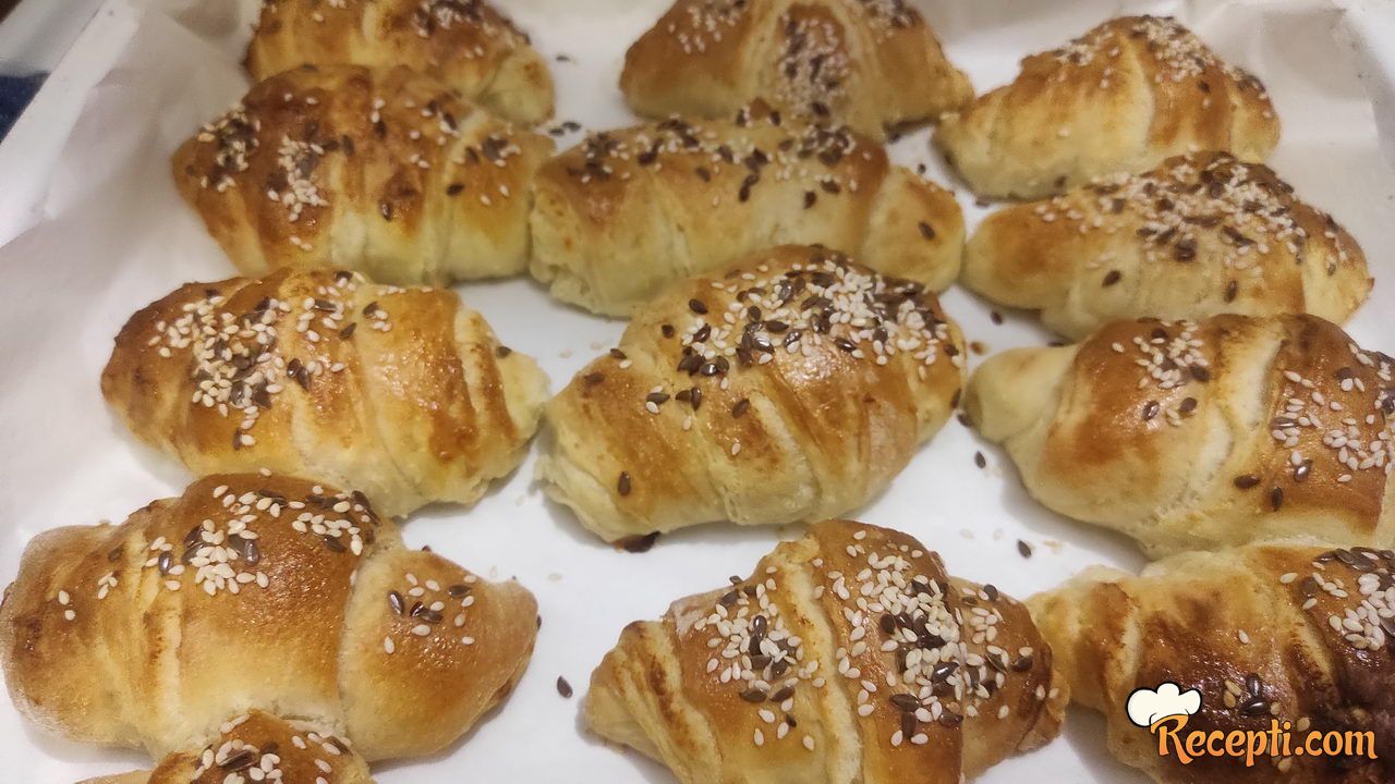 I suvi sastojci i tečnost su mereni na kuhinjskoj vagi, tako da su date količine u gramima. Pomešati jogurt, vodu i ulje pa dodati jaja. Ako su jaja krupnija, drugo jaje umutiti, pa polovinu ostaviti za premazivanje, a polovinu iskoristiti za testo. U umućenu smesu dodati šećer i so, pa umešati brašno i suvi kvasac. Umesiti testo. Testo treba da bude meko i ne treba dodavati više brašna. Ostaviti testo da naraste.