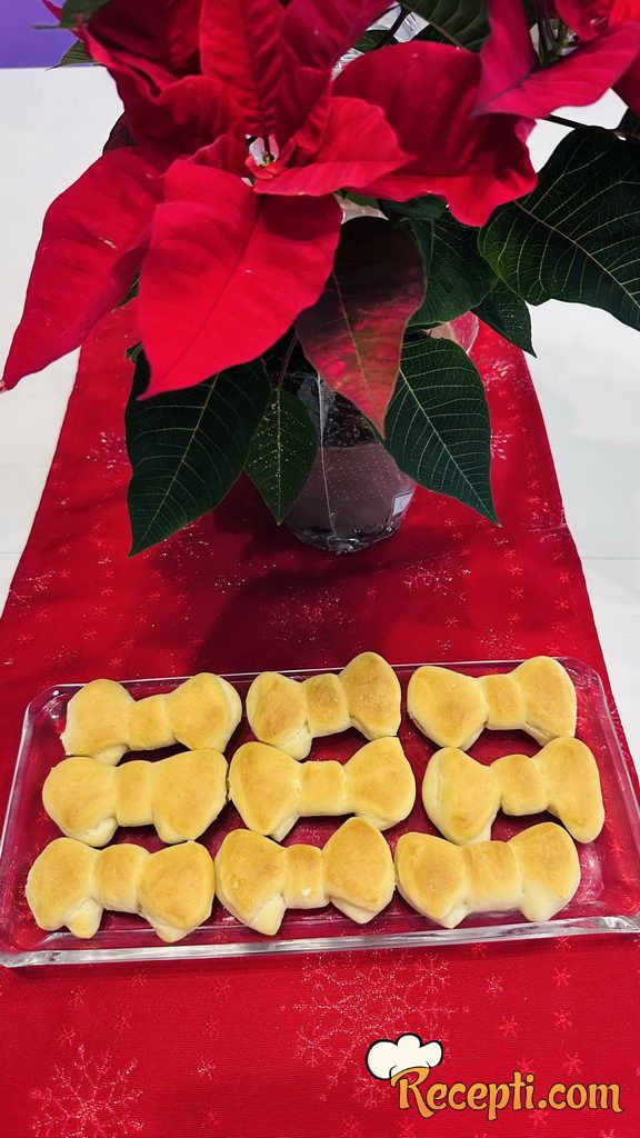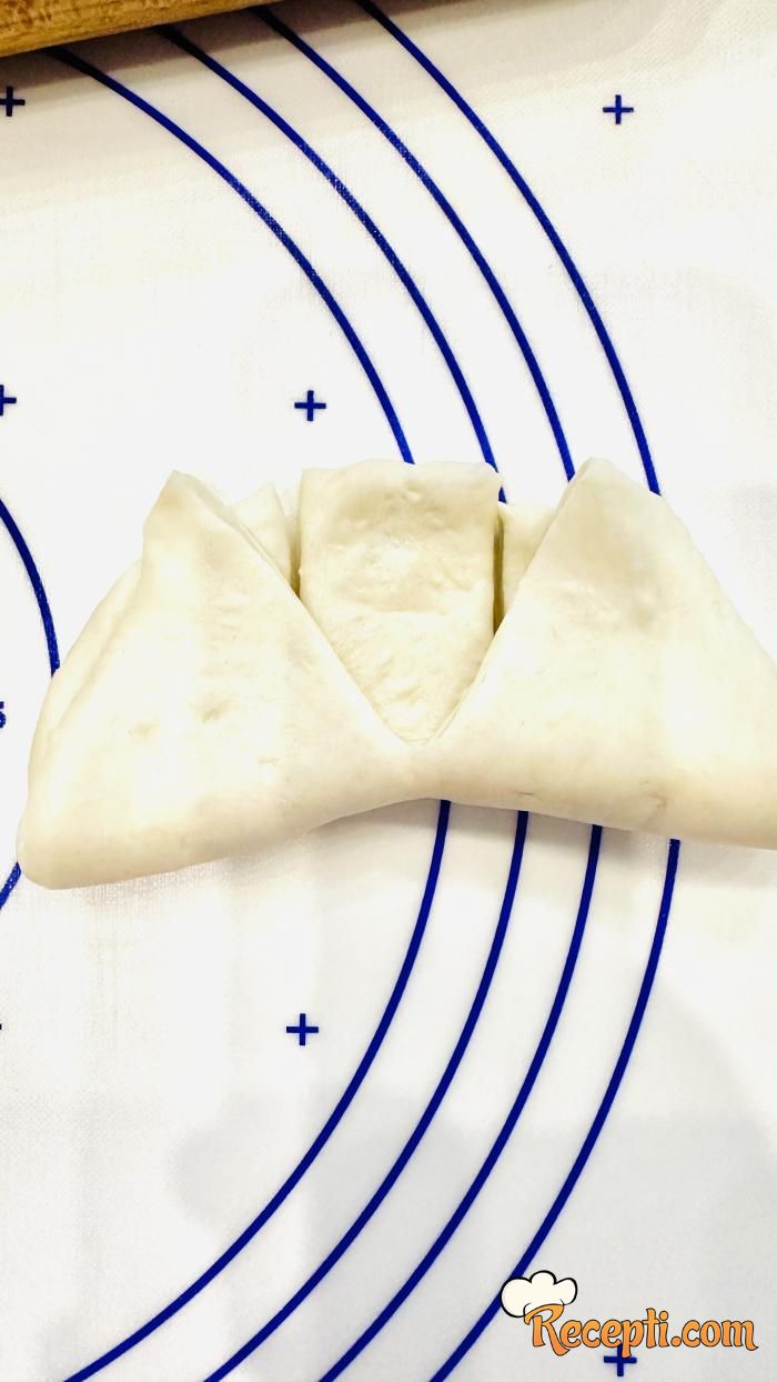 U većoj posudi pomiješati brašno, so i prašak za pecivo. Dodati suhi kvasac i šećer, pa sve kratko promiješati. Dodati toplu vodu i ulje, pa zamijesiti glatko, mekano tijesto. Ostaviti da nadođe.