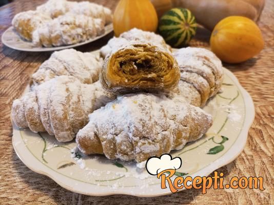 Prvo skuvati bundevu isečenu na kockice. Skuvanu bundevu procediti i ostaviti u cedilkji da se ohladi, pa je viljuškom izgnječiti da se dobije pire. U toplo mleko staviti jednu kašiku šećera (uzetu od 80 g šećera), razmrviti kvasac, promešati i ostaviti pokriveno kuhinjskom krpom da se kvasac aktivira. U vanglicu staviti 1/2 kg brašna, dodati so, ostatak šećera, prašak za pecivo, ekstrat limuna (ili narendanu koricu limuna), kašičicu arome od vanile, ulje, pire od bundeve i pripremljeni kvasac. Zamesiti testo. Testo prebaciti na pobrašnjenu podlogu i uz dodavanje dve kašike brašna umesiti mekano testo, koje i dalje ostaje blago lepljivo. Testo formirati u loptasti oblik i vratiti u pobrašnjenu vanglicu. Vanglicu prekriti providnom folijom i kuhinjskom krpom i ostaviti da naraste, da se duplira.