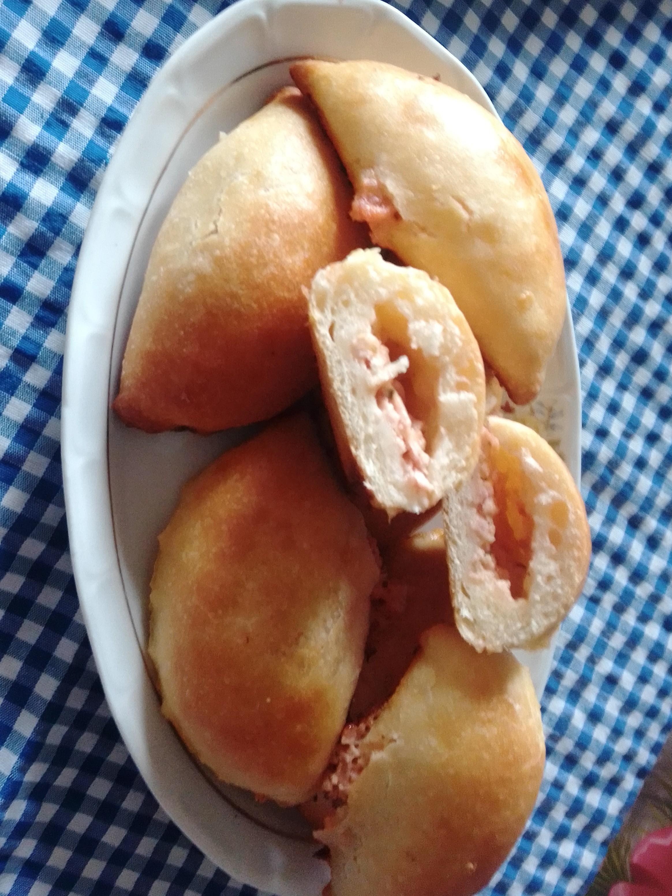 Nadošlo testo premestiti i razvaljati oklagijom, vaditi krugove (ja sam sa modelom) stavljati po kašičicu fila i zatvoriti. Slagati u pleh.