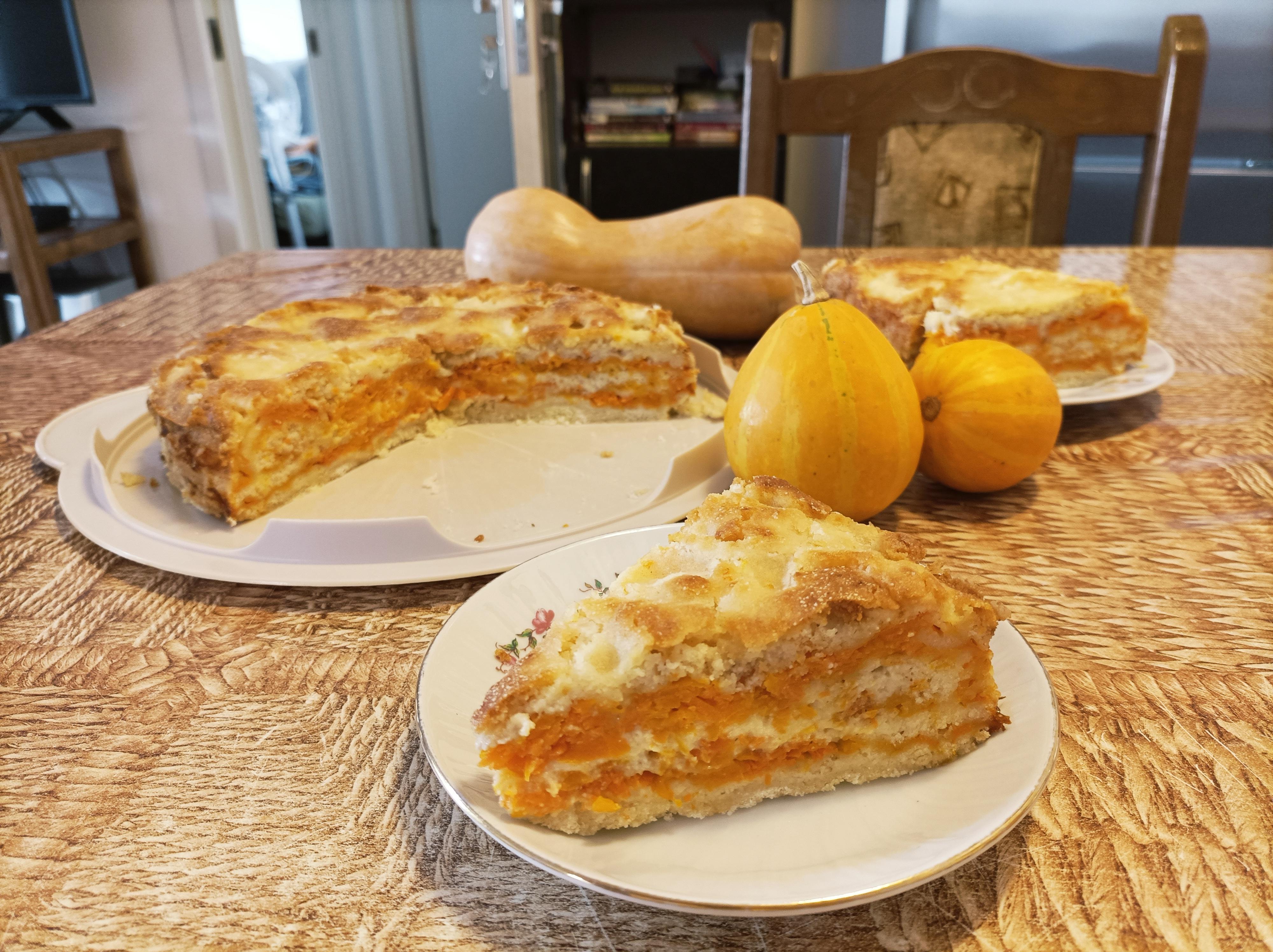 Pečenu pitu ostaviti da se ohladi u kalupu, pa skloniti obruč i pek papir i pitu prebaciti na odgovarajuću tacnu. Odmah isecite veće parče, da ne biste dva puta sekli, i uživajte...