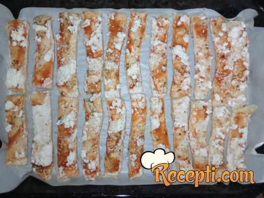 Seći na štanglice željene veličine. Ređati u pleh obložen pek papirom.