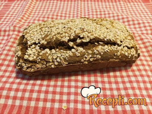 Kalup za hleb veličine 24x13x6 cm obložiti pek papirom i ostaviti na stranu. Izvaditi posudu sa testom iz frižidera i silikonskom špatulom ga prebaciti na blago pobrašnjenu podlogu. Špatulom ga "isprevrtati" da se dobije oblik vekne, prebaciti ga u kalup i posuti sa ovsenim pahuljicama. Tada uključiti rernu da se zagreje na 200 stepeni. Hleb pecite 50 minuta.