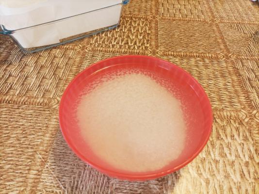 U odgovarajuću posudu stavite pirinač (ne prati ga) i naliti hladnom vodom da voda bude oko 7-8 cm iznad pirinča. Ostaviti pirinač da prenoći.