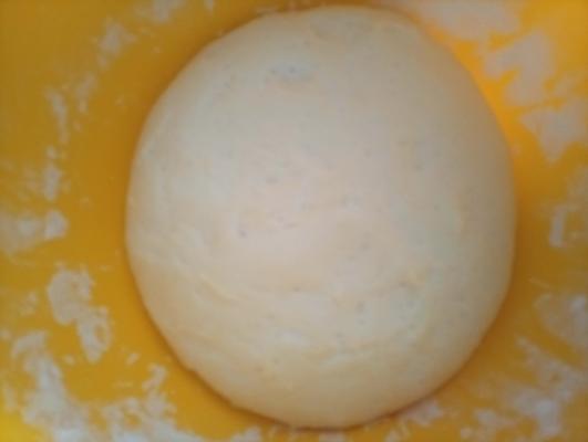 U posudu sipati brašno, dodati vodu, ulje i istopljeni margarin. Zatim polako dodavati mleko sa kvascem, pa zamesiti meko testo.