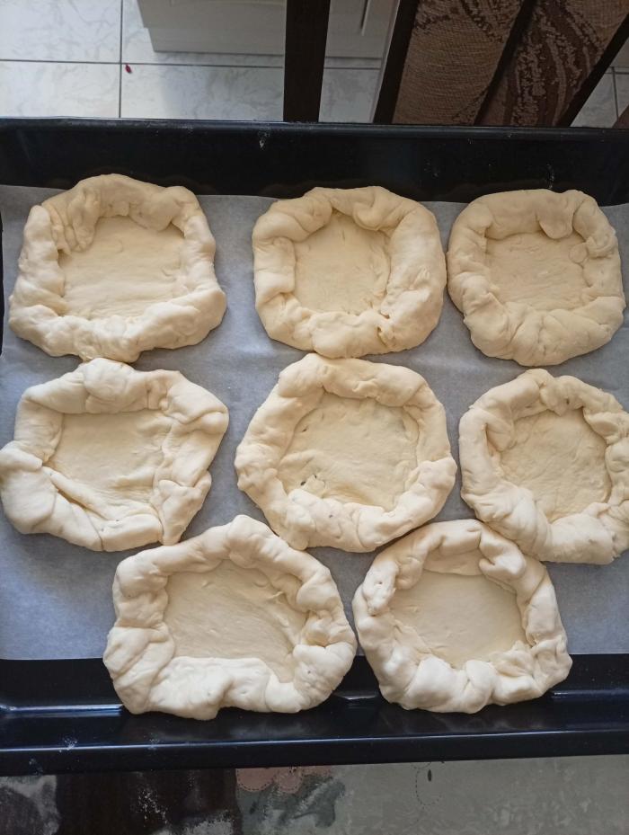 Krajeve testa preklopiti preko kačkavalja, pa gnezda poređatu u pleh obložen sa pek papirom.