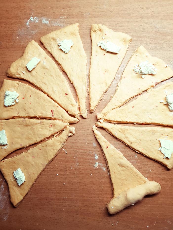 Ne znam da li ste nekada probali kifle sa ajvarom. Meni je ostalo pola tegle ajvara od barenih paprika, koji sam kupila (inače kući spremam ajvar od pečenih paprika, recept je ovde mnogo mi je ukusniji). Želela sam da ga iskoristim baš za ovakve kifle i verujte, oduševila sam se koliko su ukusne...